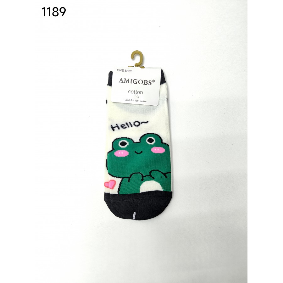 1189 носки женск. укороч. AMIGOBS принт Лягушка